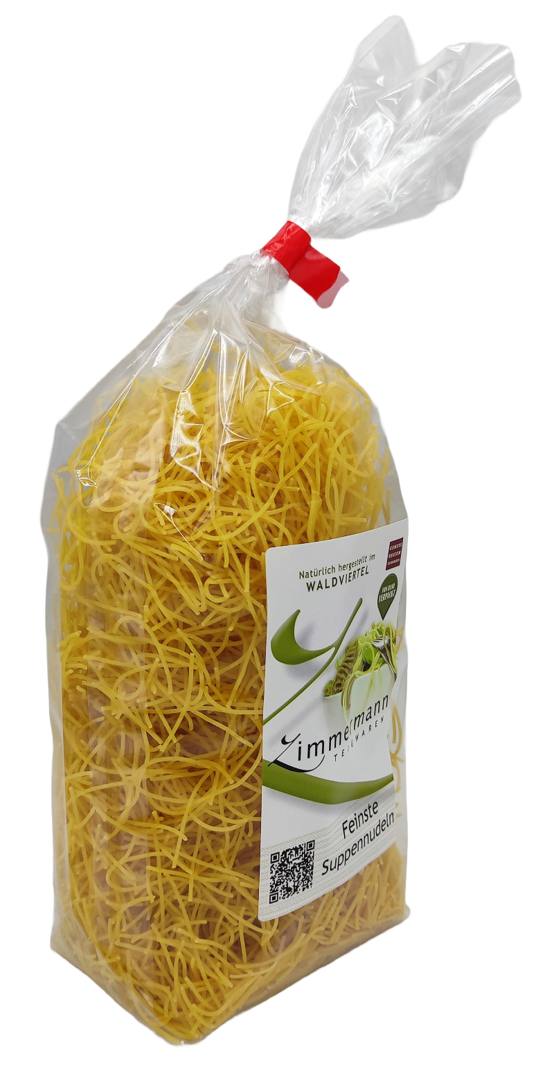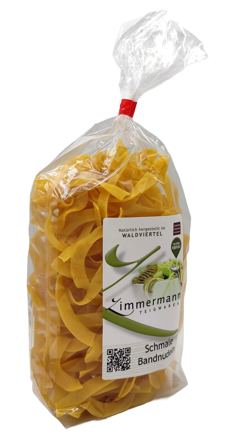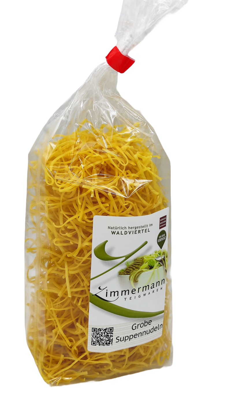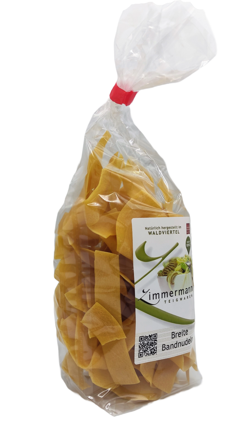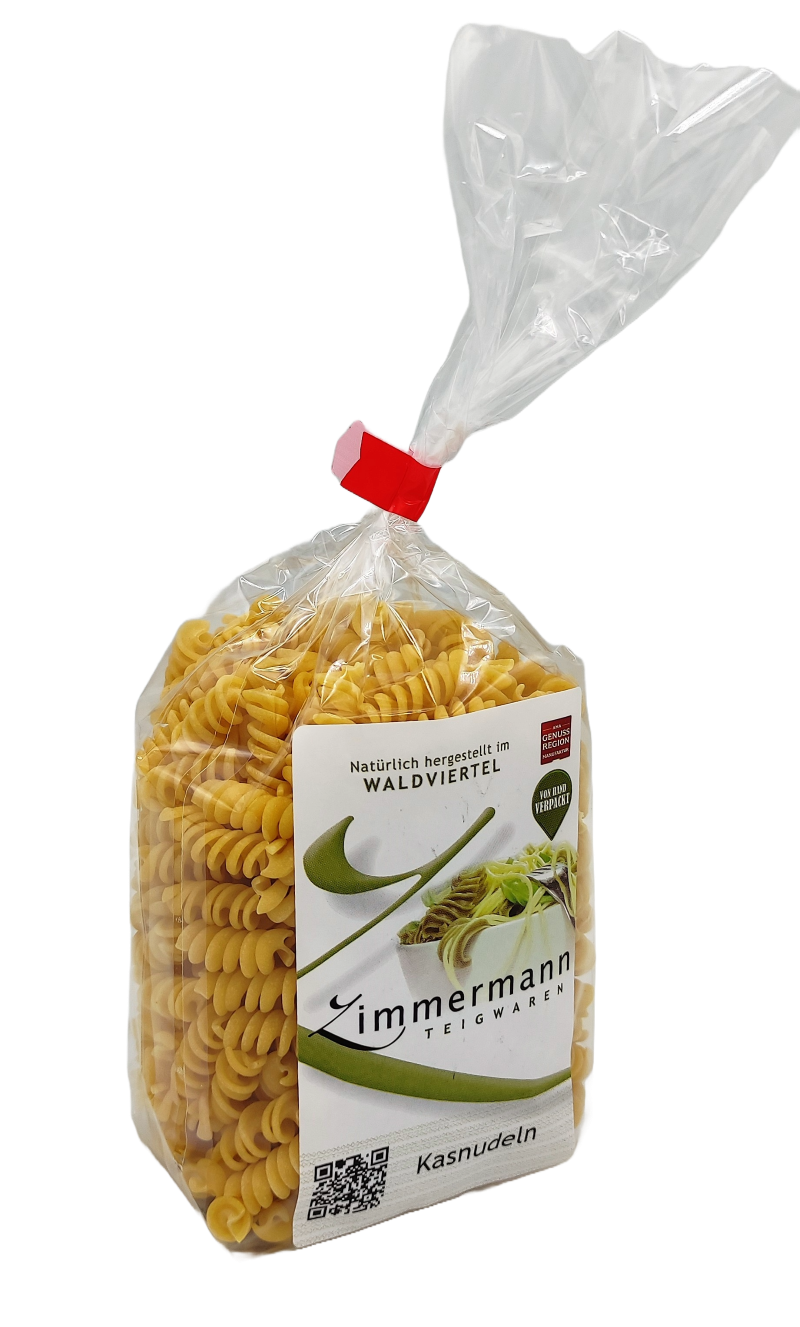 Die Basis unserer Teigwaren sind frische Eier und ausschließlich hochwertiger Hartweizengrieß. Abgesehen davon gibt es Zimmermann Nudeln auch vegan, aus Dinkelmehl und auch in der Bio-Variante.