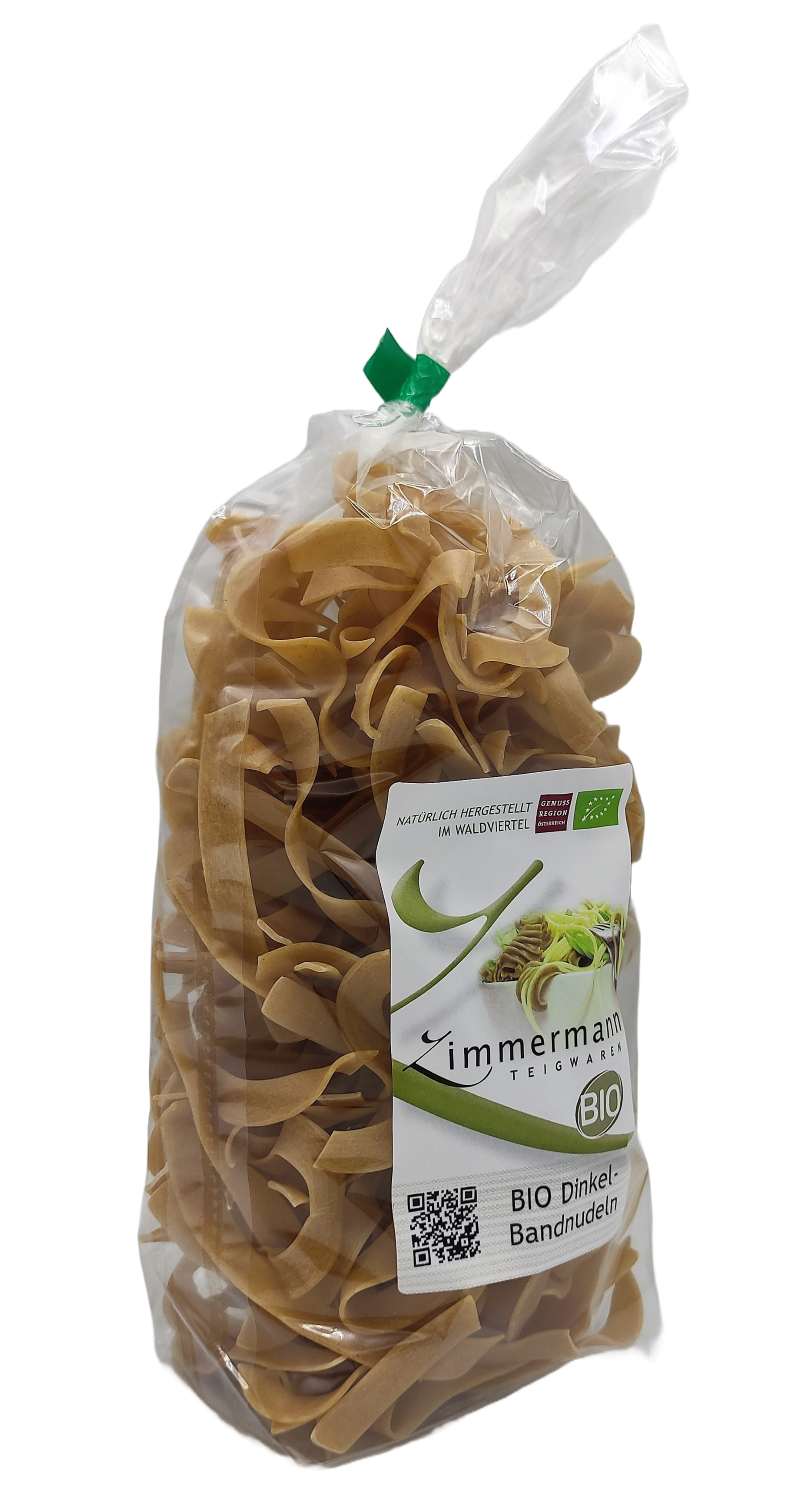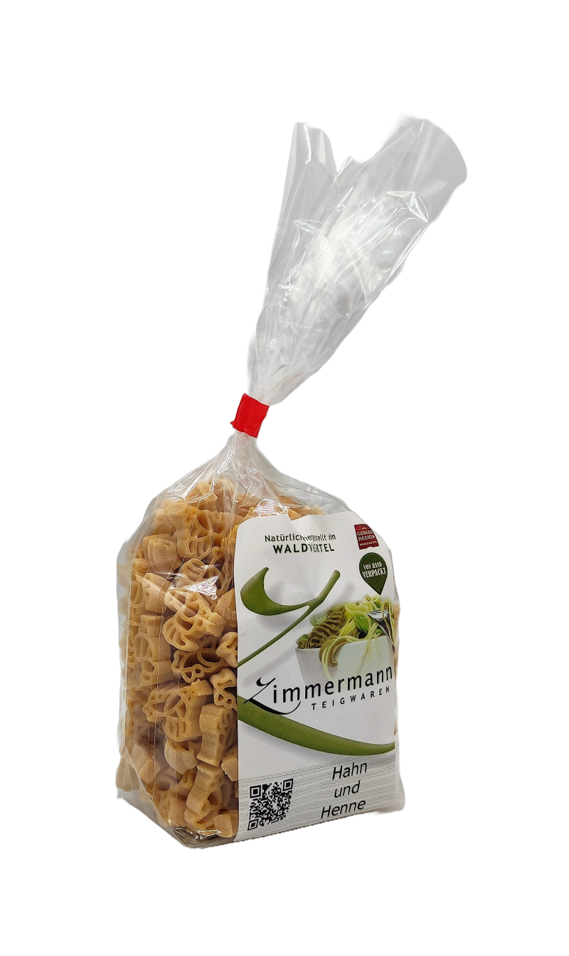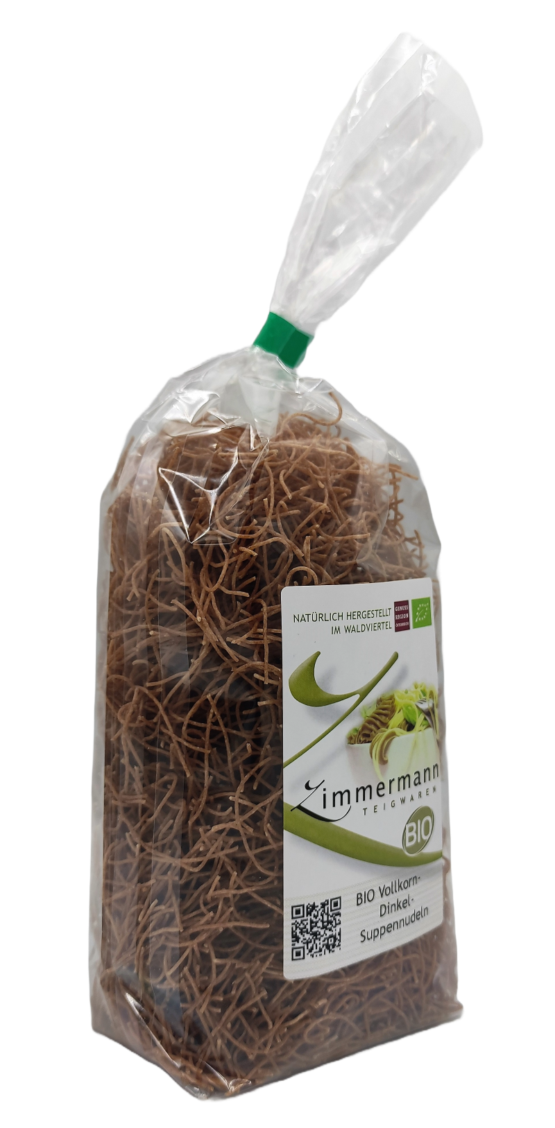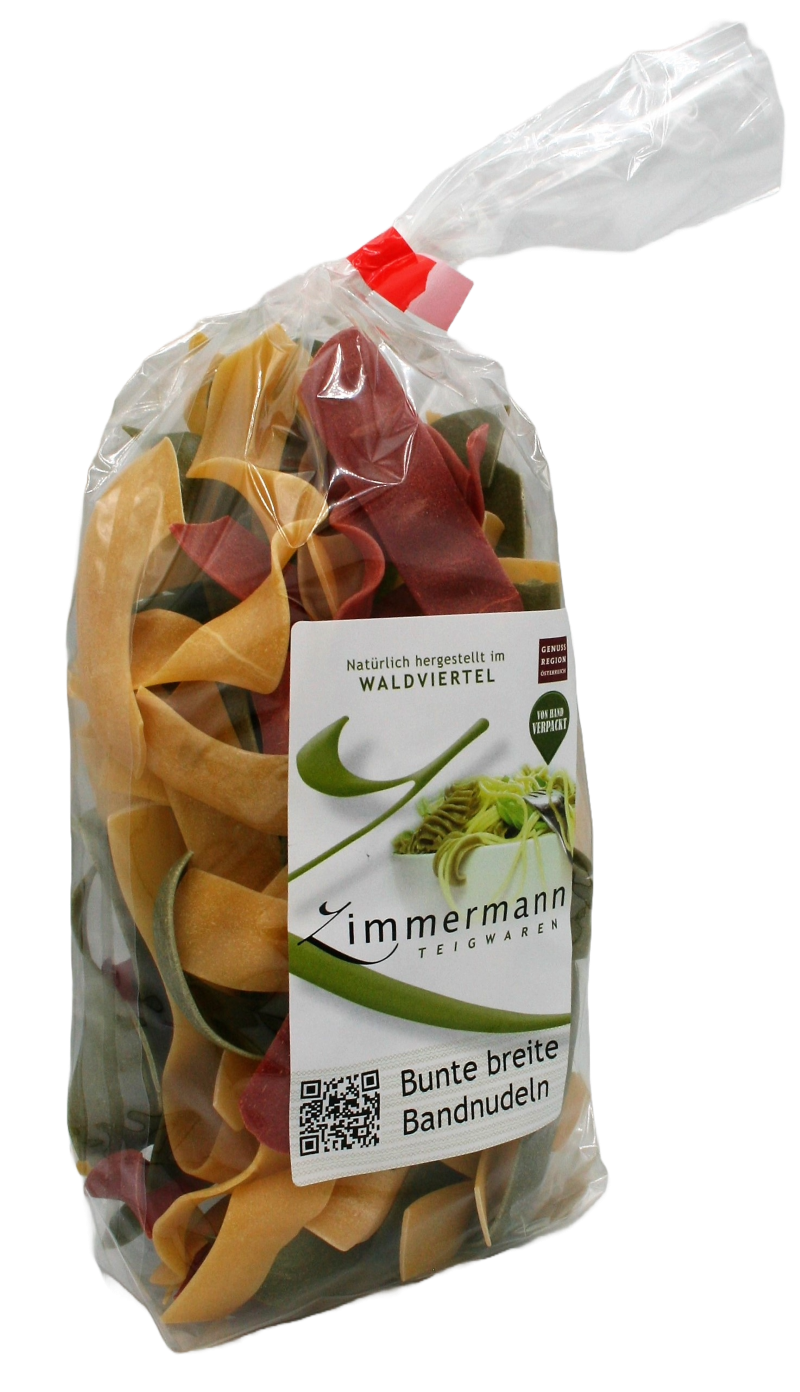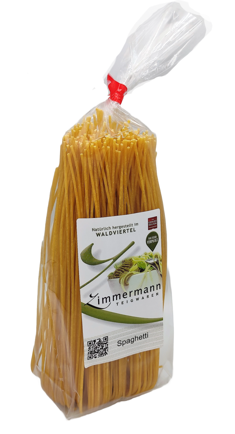 Die Basis unserer Teigwaren sind frische Eier und ausschließlich hochwertiger Hartweizengrieß. Abgesehen davon gibt es Zimmermann Nudeln auch vegan, aus Dinkelmehl und auch in der Bio-Variante.