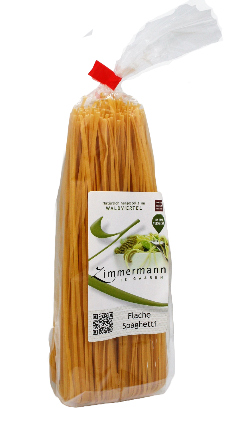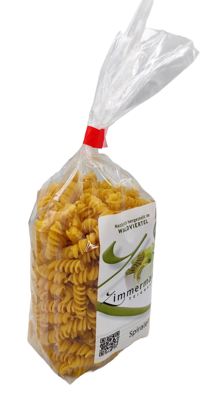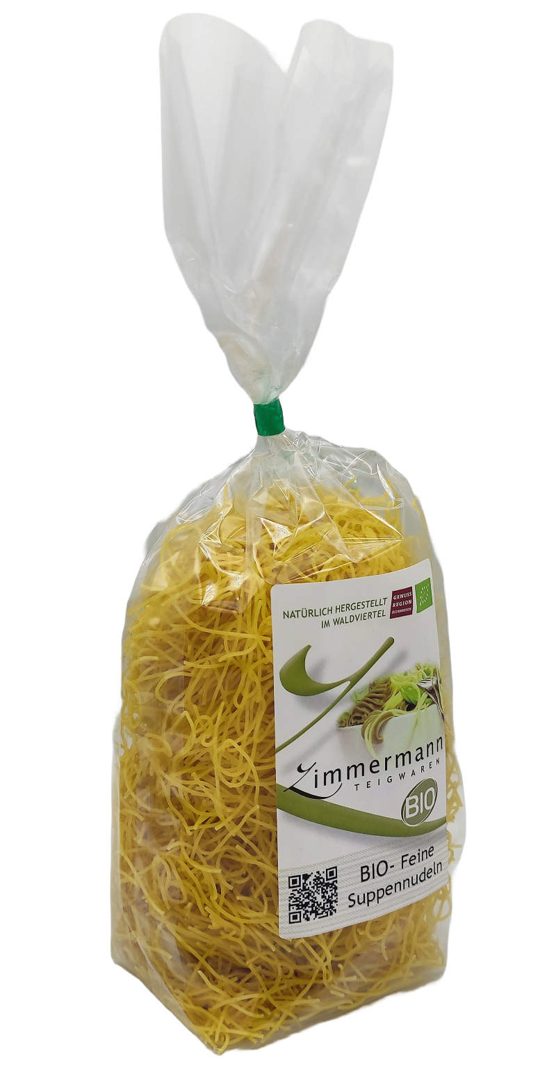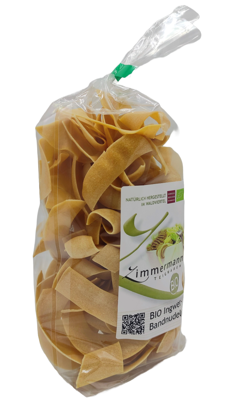 Die Basis unserer Teigwaren sind frische Eier und ausschließlich hochwertiger Hartweizengrieß. Abgesehen davon gibt es Zimmermann Nudeln auch vegan, aus Dinkelmehl und auch in der Bio-Variante.