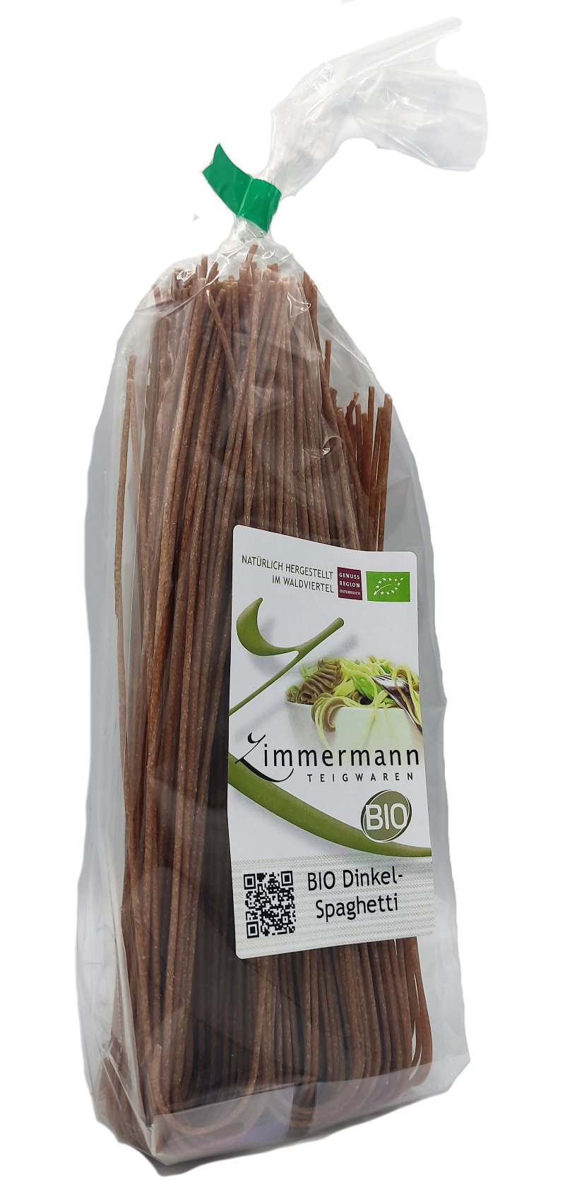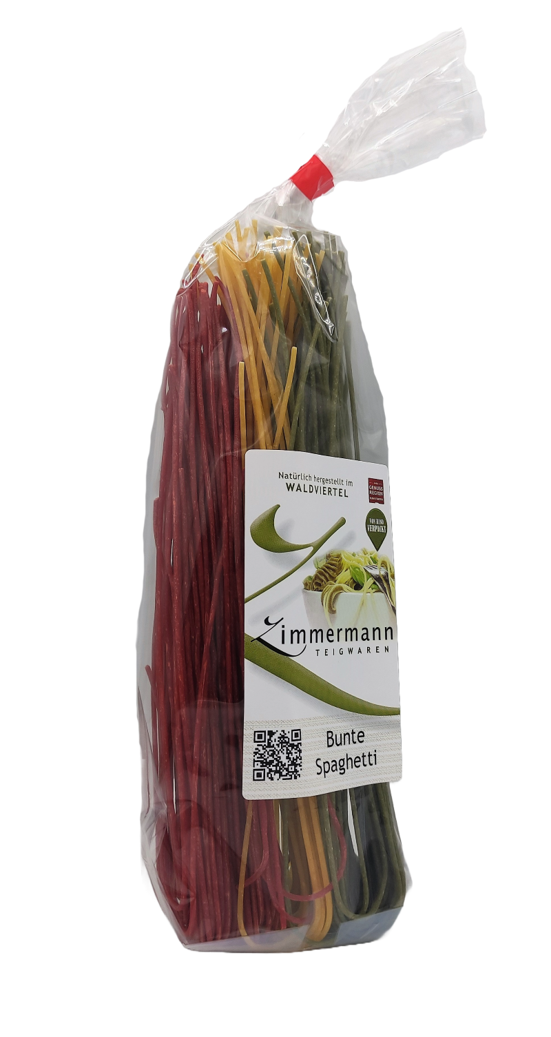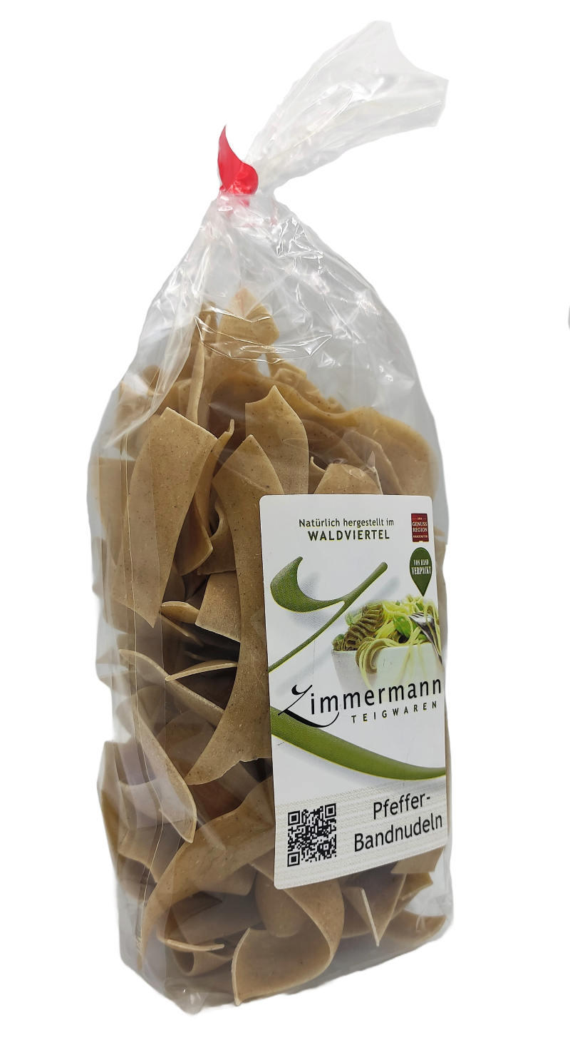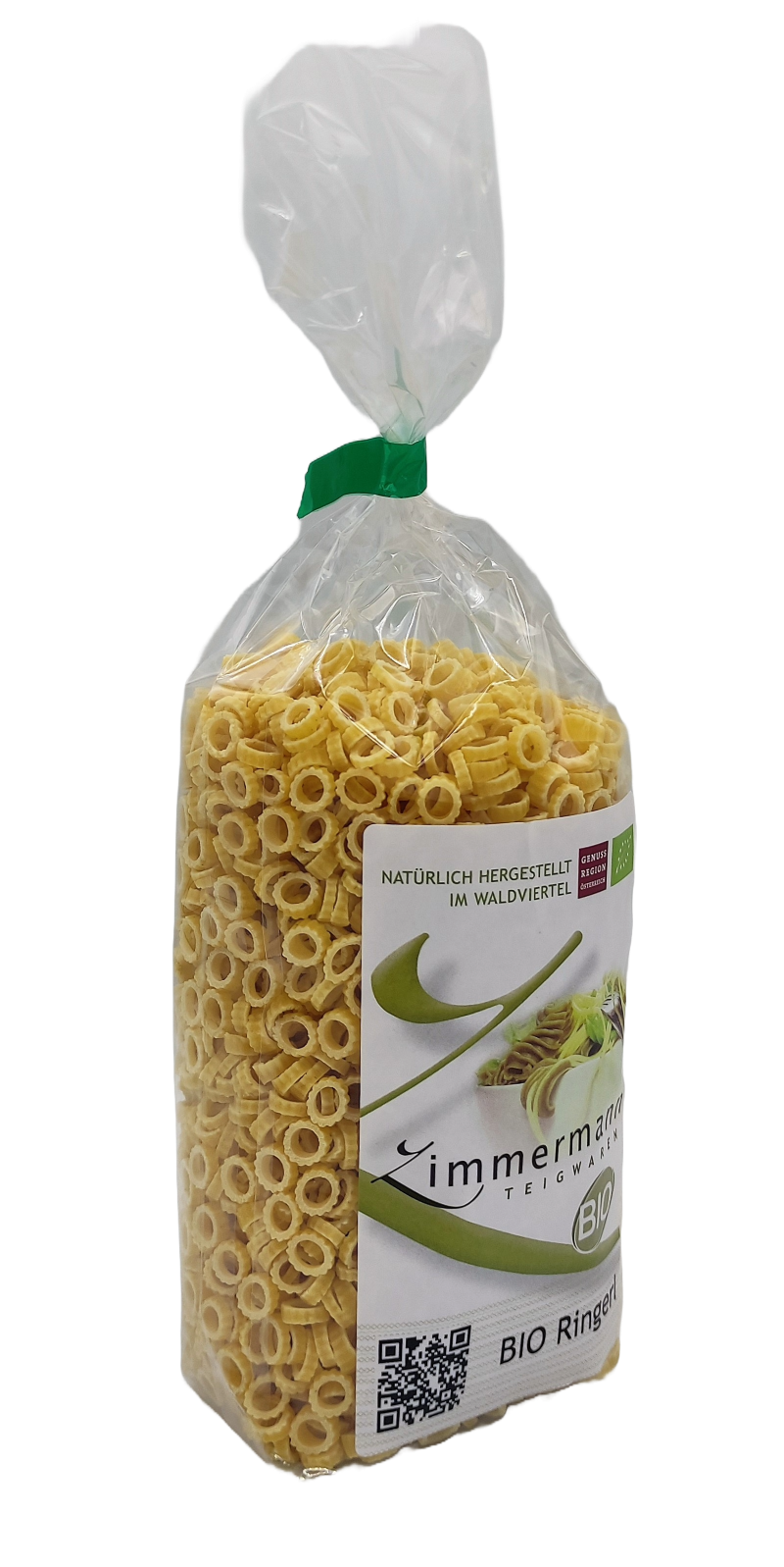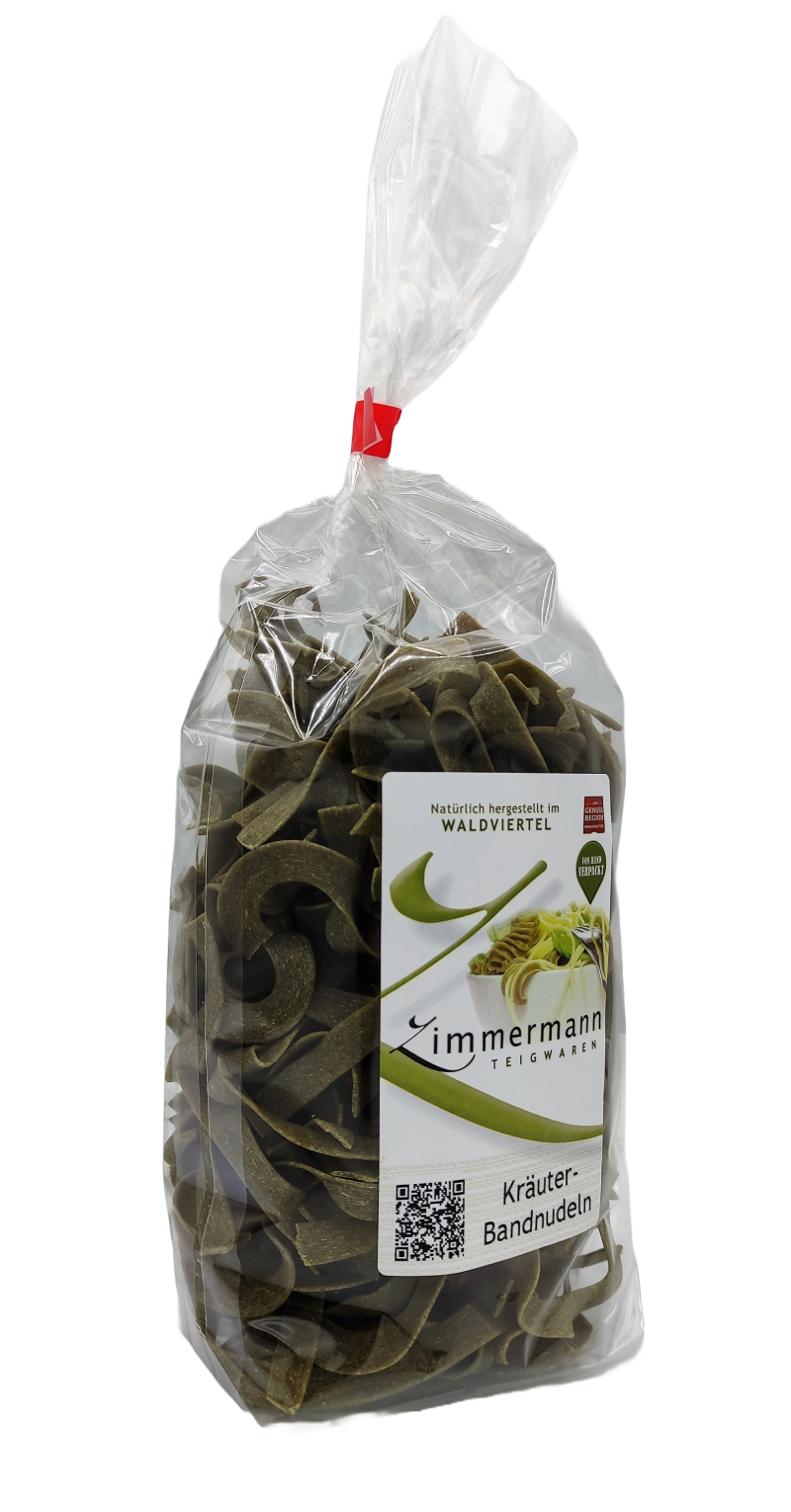 Die Basis unserer Teigwaren sind frische Eier und ausschließlich hochwertiger Hartweizengrieß. Abgesehen davon gibt es Zimmermann Nudeln auch vegan, aus Dinkelmehl und auch in der Bio-Variante.
